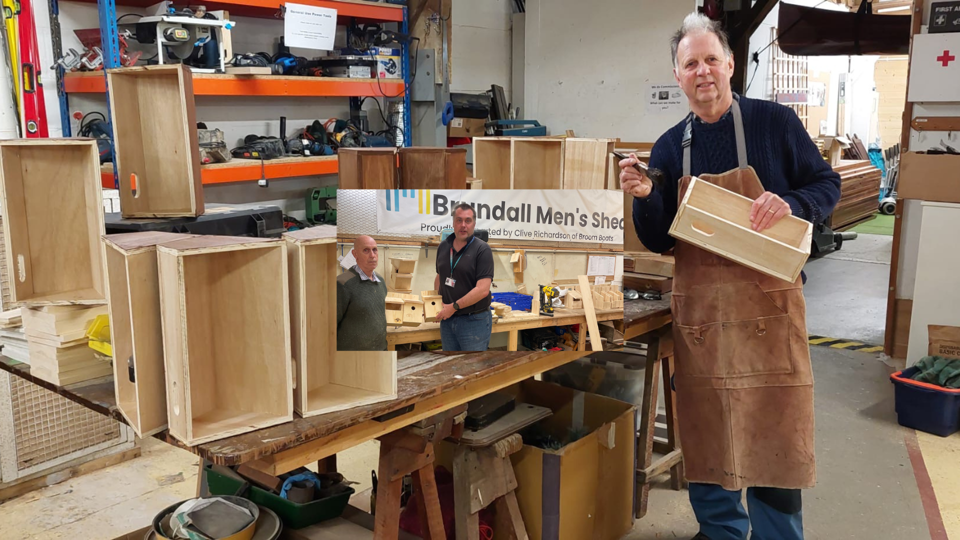 Brundall Men’s Shed is a place where you can make things, learn new skills, teach others, make friends, relax over tea and biscuits and support projects in our community. In this way we help to Improve wellbeing, reduce loneliness and combat social isolation.