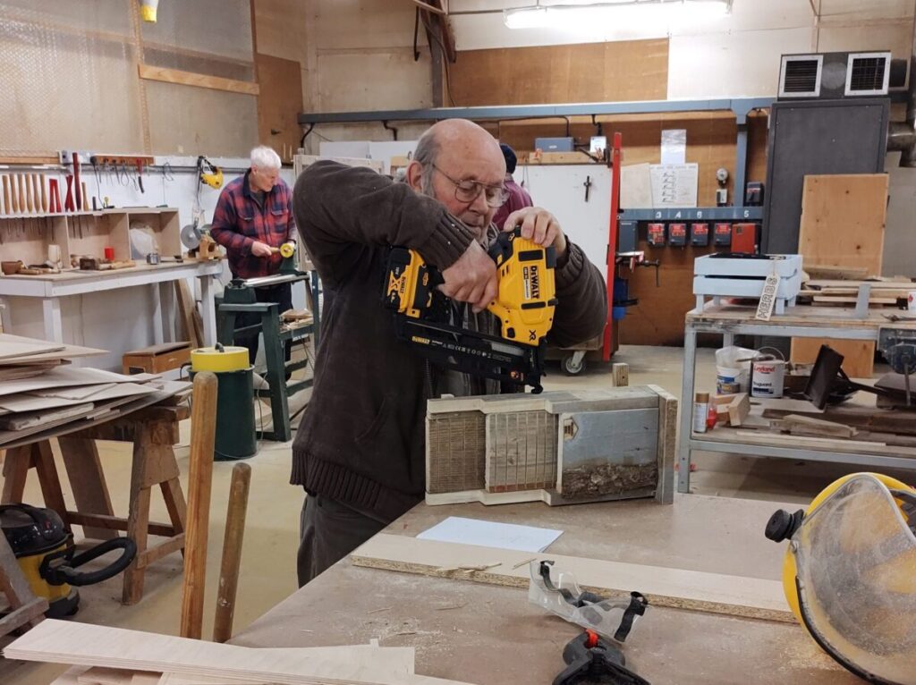 The donation shows Toolstation’s continued support of the Brundall Men’s Shed. A huge thank you to DeWalt too! The pictures below show a BMS member immediately putting the nail gun into service!
